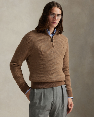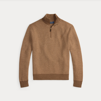 Mediumgroene katoenen trui met halve rits in regular fit met logo op de borst.