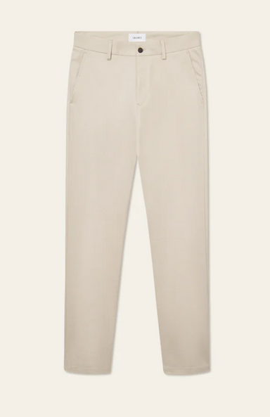 Chino in zandbeige in katoen stretch, regular fit. 97% katoen 3% elastane