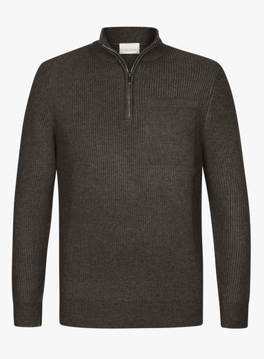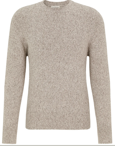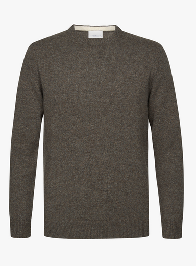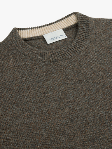 Trui met ronde hals in een kleurmix brei met hoofdkleur bruin. 80% wol 20% polyamide