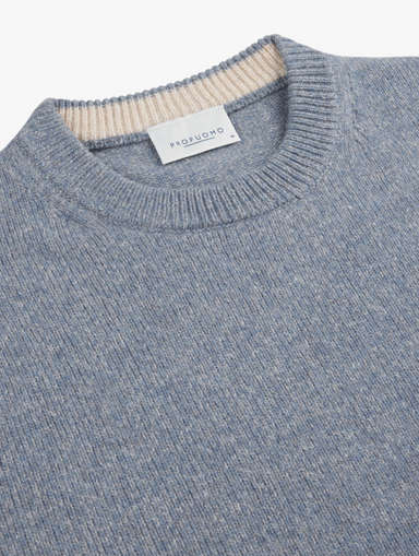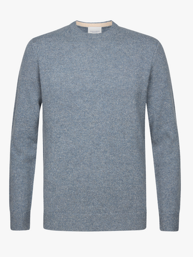 Trui met ronde hals in een kleurmix blauw. 80% wol 20% polyamide