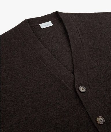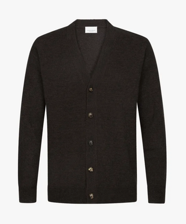 Medium grijze wollen bodywarmer in een visgraatmotief. 100% wol