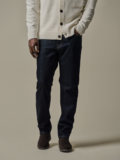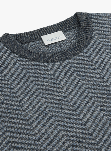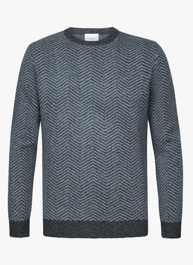 Trui mer ronde hals in midden en donkerblauw met herringbone motief. regular fit