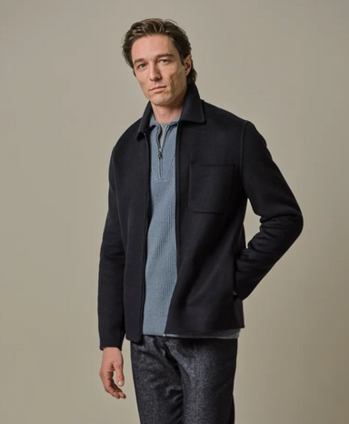 Tijdloos donkerblauwe overshirt in een wolmix. 60% wol 40% polyester
