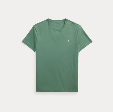 Gewassen groene t-shirt in katoen met logo op de borst. custom slim fit