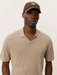 Donker zandkleurige gebreide polo in linnen-katoen , regular fit